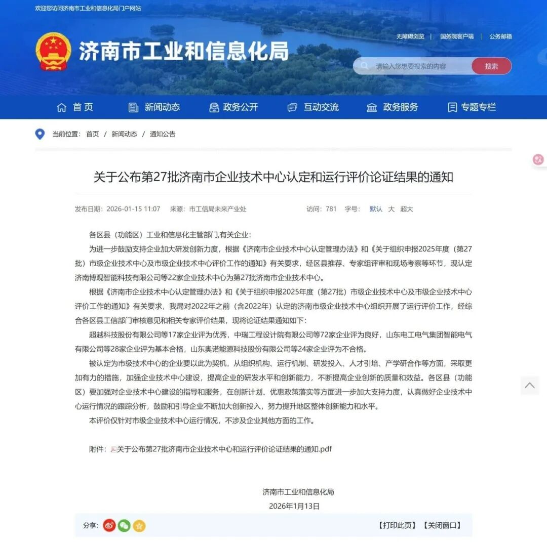 与此同时,在济南市工信局组织的市级企业技术中心年度评价中,明晟环保凭借完善的组织架构、持续的研发投入、成熟的产学研机制,从众多参评企业中脱颖而出,获评 “良好” 等次。此次评价覆盖 2022 年及之前认定的企业技术中心,评审维度全面、标准严苛,“良好” 等次是对企业创新体系建设的权威认可。
